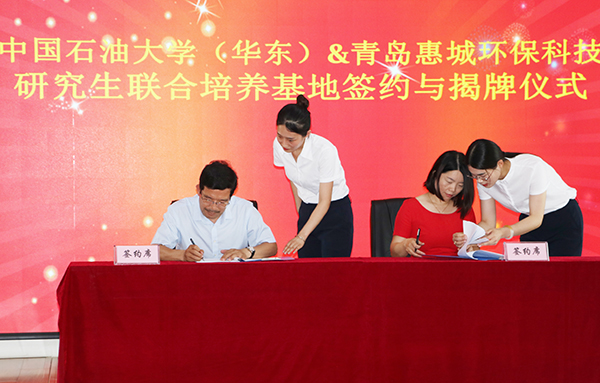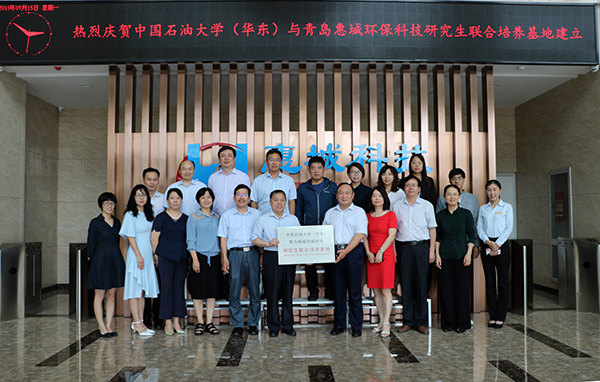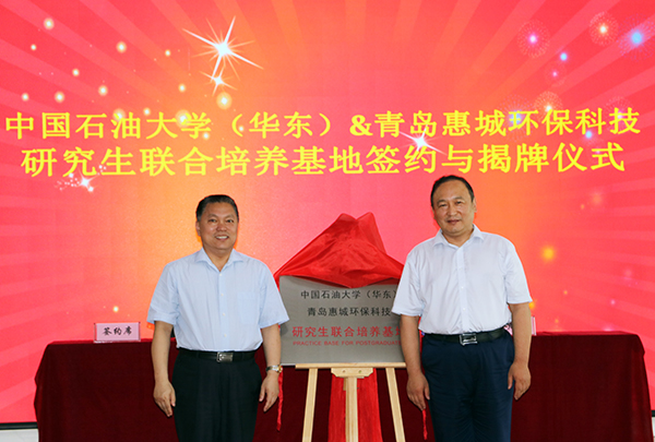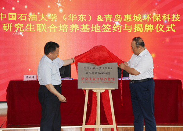 7月15日下午,“中國石油大學(華東)與青島惠城環保科技研究生聯合培養基地”揭牌儀式在公司研發中心隆重舉行,中國石油大學(華東)副校長、研究生院院長李兆敏,研究生院常務副院長閻子峰及學校其他領導、老師,我公司董事長張新功、常務副總經理葉紅攜公司核心技術人員及入學石大的學生代表共同出席了此次揭牌儀式。