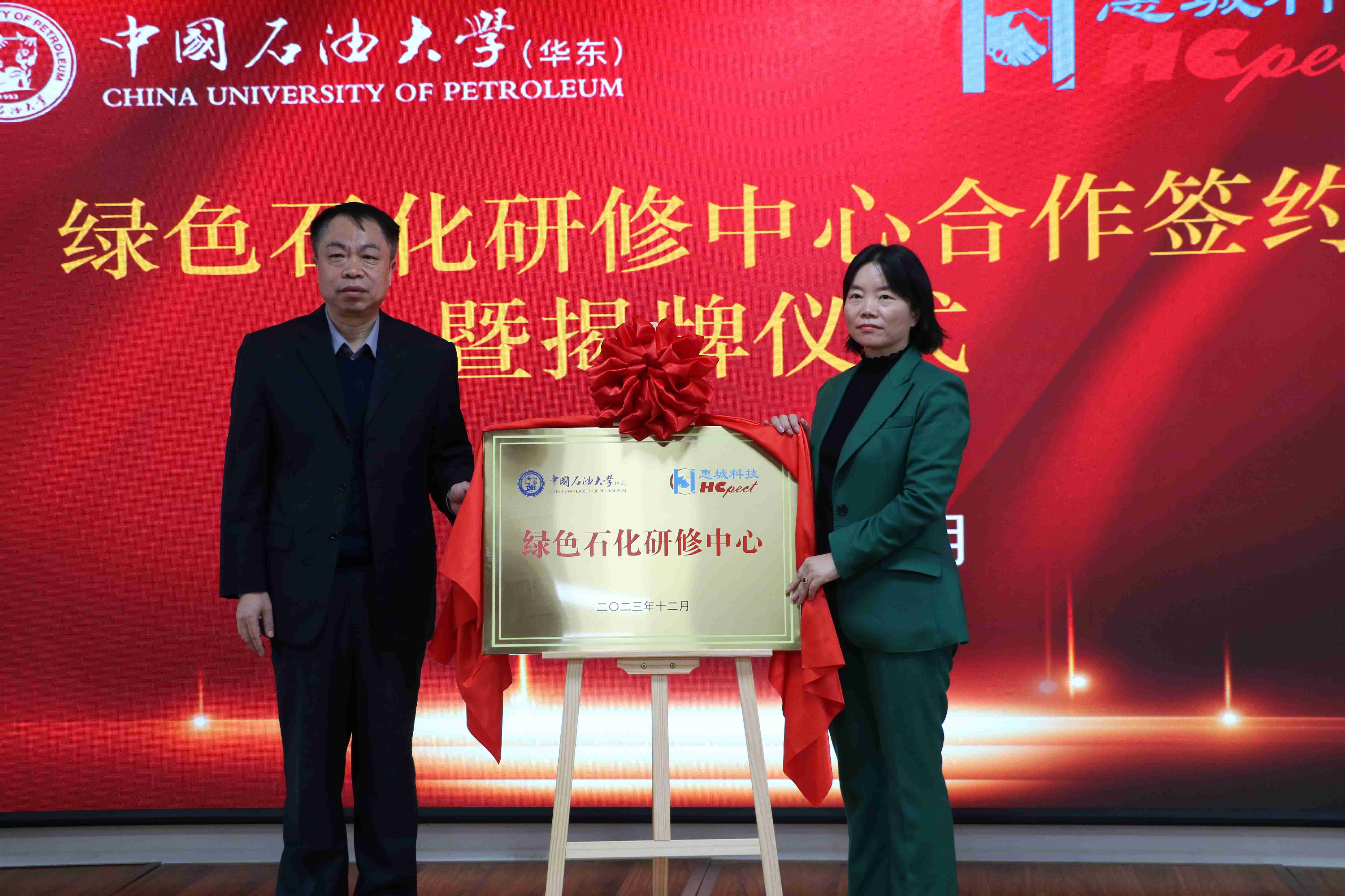 會(huì)議中,主持人首先就綠色石化研修中心合作背景、合作開(kāi)展情況進(jìn)行了介紹,中國(guó)石油大學(xué)(華東)教育發(fā)展中心主任韓紅江、惠城環(huán)保董事長(zhǎng)葉紅代表雙方上臺(tái)簽約揭牌,并發(fā)表致辭,隨后展開(kāi)了座談交流。